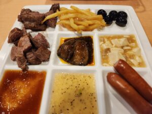 サイコロステーキ、フライドポテトはファースト盛りで必須なんです。